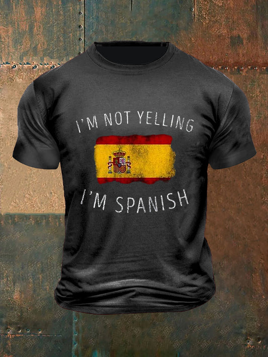 Hombre Vintage No estoy gritando, Soy Español Estampado Abstracto Casual Algodón Manga Corta Camiseta