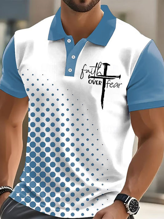 Cruz de fe de los hombres Impreso Casual Botón Camiseta