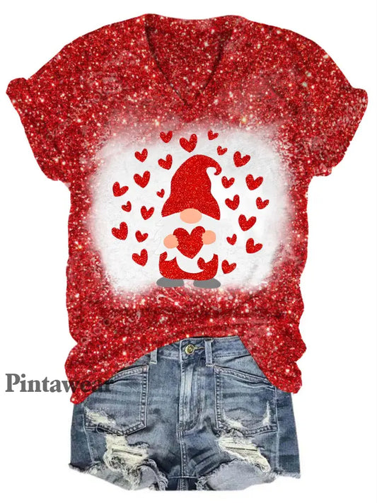 Valentine's Glitter Gnome V-Neck T-Shirt