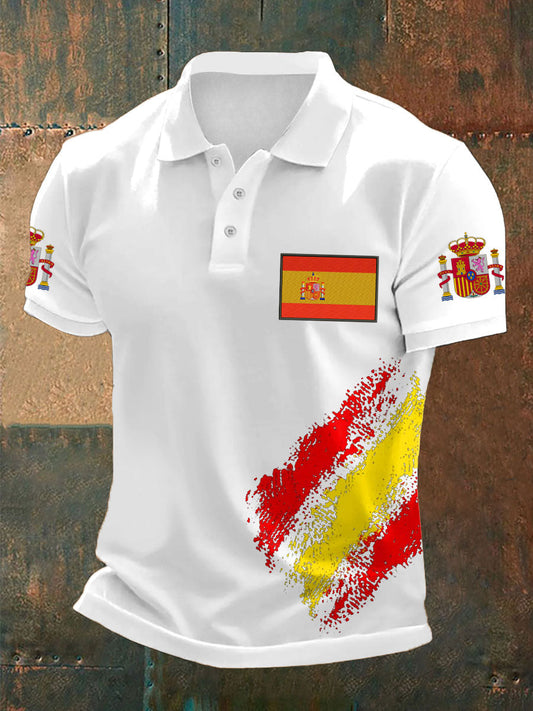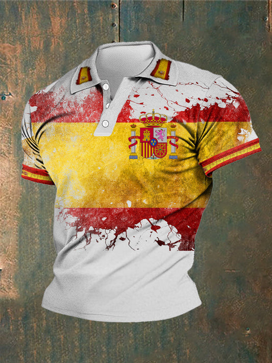Hombres Vintage bandera española patriótica símbolo abstracto impreso casual algodón manga corta Polo