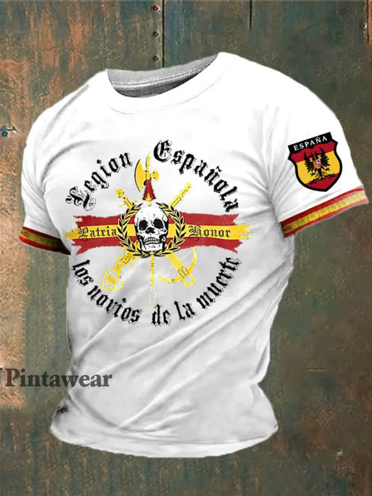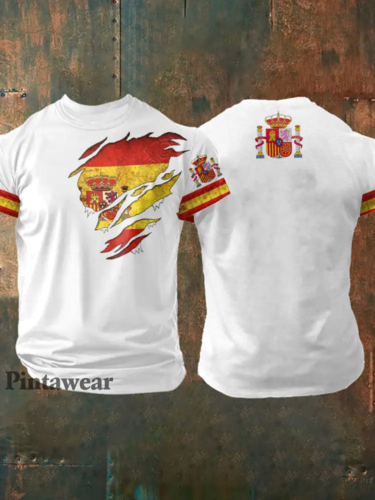 Camiseta de manga corta de algodón casual con estampado abstracto de águila patriótica de bandera española vintage unisex
