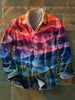 Camisa de algodón casual con estampado de arte de montañas coloreadas para hombres