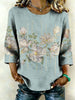 Camisa de lino de arte floral para mujer