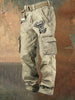 Hombres Retro Art Print Multi-bolsillo de múltiples funciones de carga Pantalones