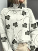 Jersey de cuello alto floral minimalista amarillo pálido para mujer