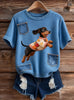 Mujer Artístico Estampado Animal Cómodo Punto Manga Corta Top
