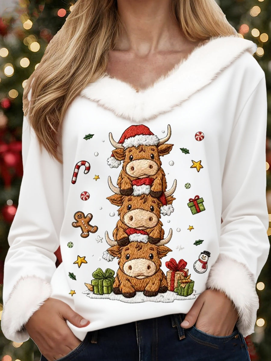 Mujer Navidad Bonitos Estampado Vaca Casual Cuello Piel Top