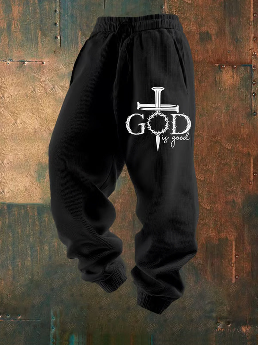Pantalones casuales sueltos con estampado de fe retro para hombres