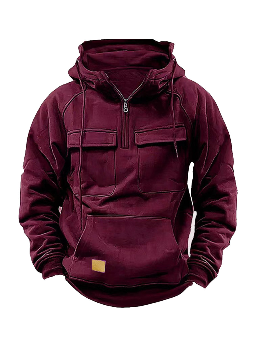 Sudadera con capucha multi-bolsillo de color sólido para hombres