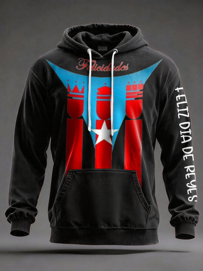 Unisex Puerto Rico Tres Reyes Día Arte Impreso Sudadera con capucha