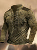 Vintage Western Art Print Country Style Cuello en V Henley Camisa de manga larga